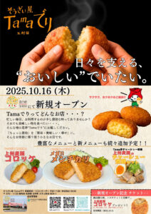 このたび、2025年10月16日(木)に「そうざい屋 Tamaでり」を道の駅 玉村宿内に新規オープンいたします。
